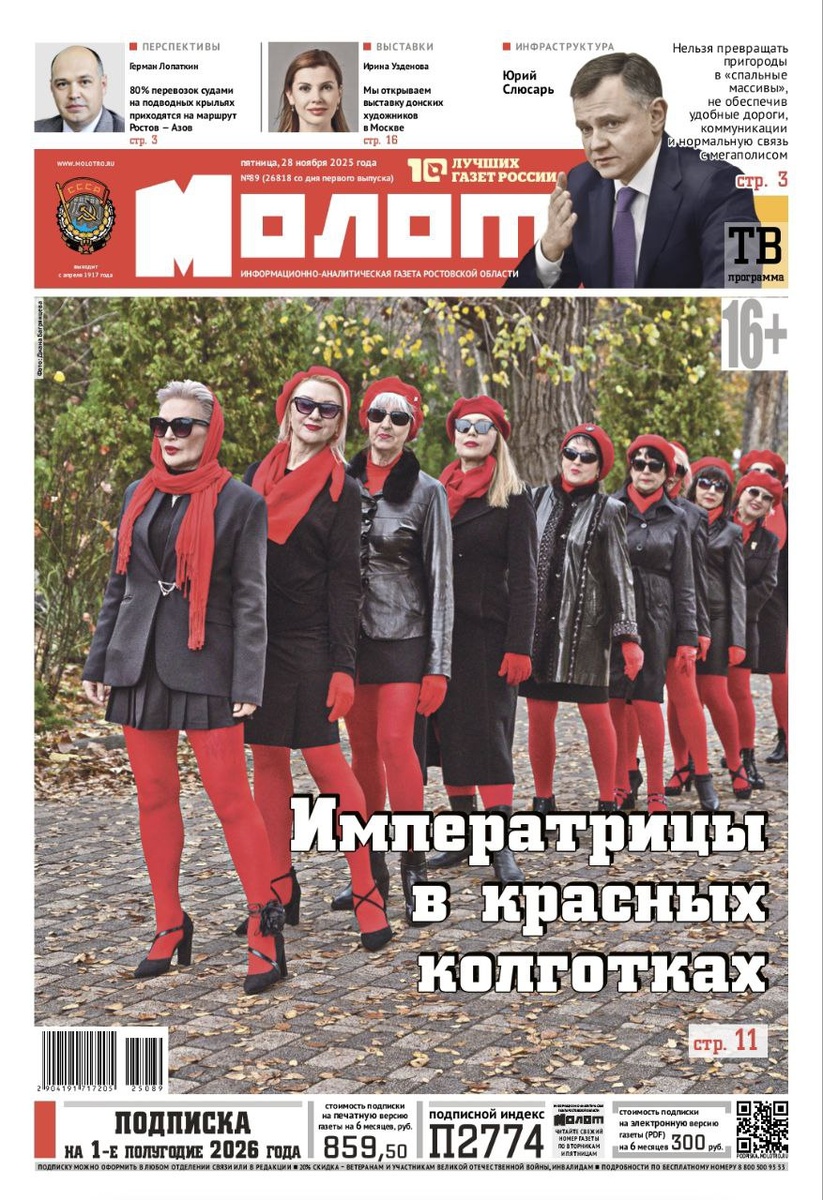 🆕Читайте в «Молоте» 📌Жили в Ростове Черевичкины... 29 ноября — памятная дата, которая в Ростове отмечается ежегодно. В этот день в 1941 году войска 56-й армии мощным контрударом освободили донскую столицу от первой оккупации. Она длилась всего неделю, но ее назвали «кровавой». Среди многочисленных жертв мирного населения наиболее известно имя Вити Черевичкина — мальчика, расстрелянного фашистами из-за того, что он держал голубей. Корреспондент «Молота» Александр Оленев поговорил с членами семьи Черевичкиных, которые сейчас живут в Ростове. 📌Императрицы в красных колготках Береты, черные пальто и пиджаки, темные очки. Такой смелый стиль выбрали модели серебряного возраста для дефиле на Театральной площади Ростова. С ними побеседовала Ирина Варламова. 📌«Наши документы не лежат под стеклом, как в музее» Делегация ростовских реставраторов побывала в Поднебесной. «Молот» выяснил, какие секреты реставрации старинных книг узнали у китайских коллег специалисты Донской публичной библиоте