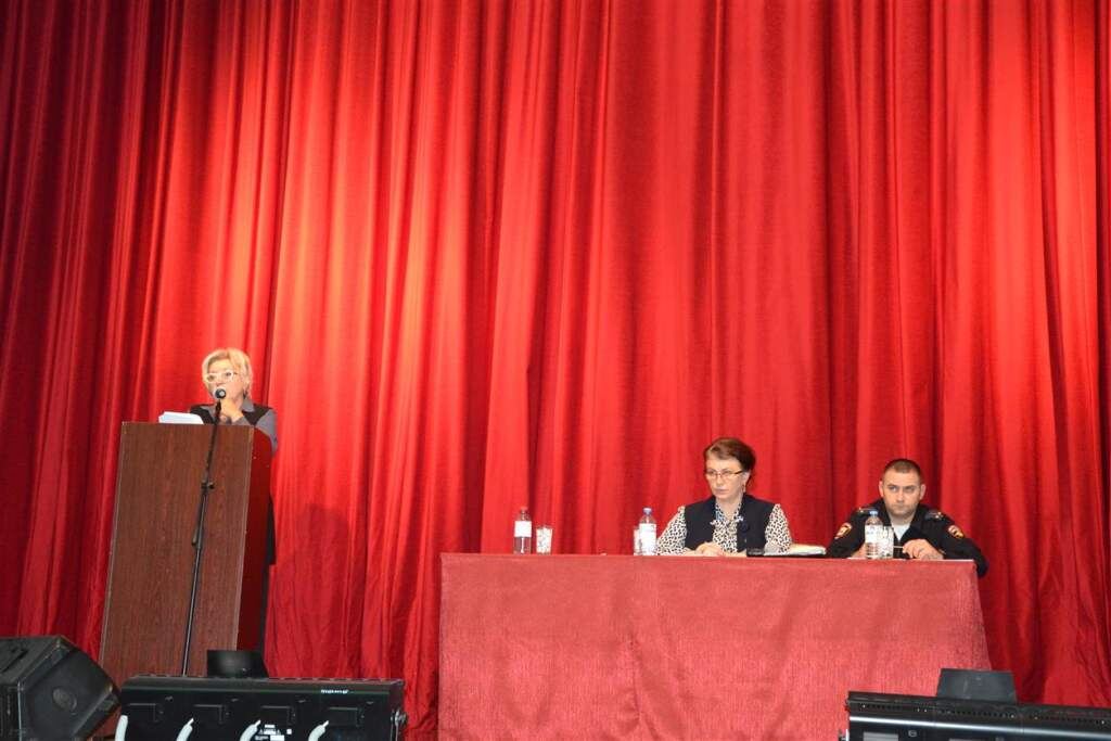 С докладами выступили глава администрации Шолоховского городского поселения О. П. Снисаренко и участковый уполномоченный В. А. Пиунов.