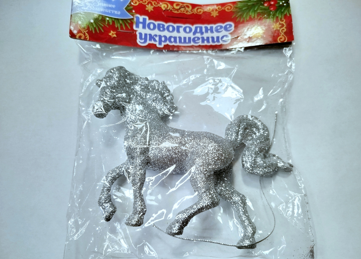 Всем творческий привет! Сегодня я с переделкой. Решила обновить лошадку, которую давно купила, но собиралась выбросить из-за брака. Одна нога была деформирована, что и стало причиной моего решения избавиться от нее. Но, подумав, решила, что все можно исправить. Лошадка была щедро обсыпана блестками, которые постепенно осыпались. Поэтому сначала я покрыл фигурку лаком, чтобы блестки не осыпались. Затем подсохшей шпатлевкой я придал форму ноге фигурки и заполнила отверстие в другой ноге. Лошадку покрасила в красный цвет. Золотой краской окрасила гриву, хвост и копыта и покрыла лошадку лаком. Нанесла золотых блесток на окрашенные золотистой краской поверхности. У меня контур с золотыми блестками, но можно нанести и сухие блестки, приклеивая их на лак. Нарисовала глаза лошадке. Шилом проделала отверстие и вставила колпачок для елочной игрушки. Подобрала для лошадки декор: стразовые цепочки, две брошечки и золотистый шнур для подвеса. Из бархатной ленты сделала два маленьких бантика. Цепоч