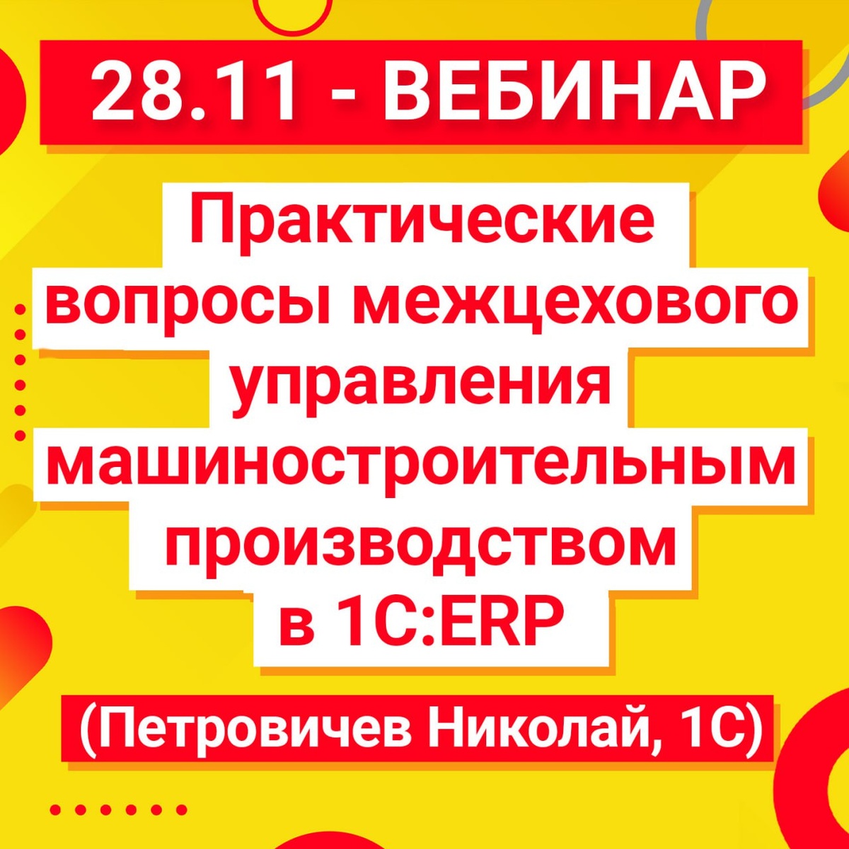 🔥 Последняя возможность записаться на вебинар в по направлению «Решение практических задач автоматизации с использованием 1С:ERP»! 📌 Сегодня, 28 нобяря 2025г. приглашаем на вебинар: Практические вопросы межцехового управления машиностроительным производством в 1С:ERP (Петровичев Николай, 1С) В рамках вебинара будут рассмотрены следующие темы: ▫️Когда нужен промежуточный выпуск между этапами производства? ▫️Как оформить внутреннюю (межцеховую) кооперацию? ▫️Как настраивать схемы обеспечения и какие у них есть ограничения? ▫️Как организовать прослеживаемость в производстве? ▫️Когда полезна встречная корректировка назначения товаров? ▫️Как отработать извещение об изменении КТД, если производство уже запущено? ▫️Упаковка продукции – это еще производственная или уже складская деятельность?