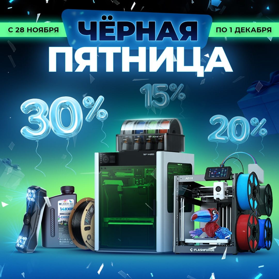 🔥🔥🔥ЧЕРНАЯ ПЯТНИЦА уже здесь! В этот раз акция ЧЕРНАЯ ПЯТНИЦА продлится с 28 ноября по 1 декабря! (потому что одного дня недостаточно😊) Мы подготовили для вас скидки на КУЧУ ТОВАРОВ!👀 Все товары по акции здесь👇 👉Чёрная пятница • Black Friday #lider3d_акция Новости из мира 3D