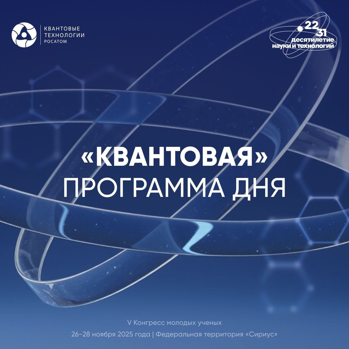 💬 Пятница. Заключительный день Конгресса молодых учёных. Кванты. Вы с нами? Делимся программой на сегодня: ⏰ 15:00—15:50 📍 Стенд Госкорпорации "Росатом" Лекция Дмитрия Чермошенцева, руководителя научной группы "Росатом Квантовые технологии" «Квантовые технологии современности: как мельчайшие частицы помогают решать сложные задачи» ⏰ 16:40 – 18:00 📍 Диджитал центр Сессия "От намерений — к действиям: как выстроить устойчивую систему подготовки кадров в квантовых технологиях" ⏰ Весь день 📍 Стенд Госкорпорации "Росатом" Квантовая инсталляция, общение с учёными Квантового проекта "Росатома"
