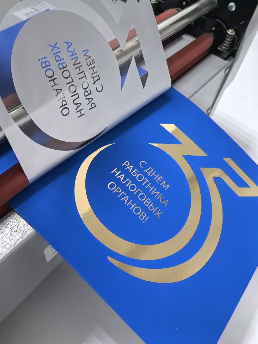 Мы приняли участие в создании праздничной полиграфии для налоговых служб: открытки с фольгированием, конверты с сургучом и брендированные