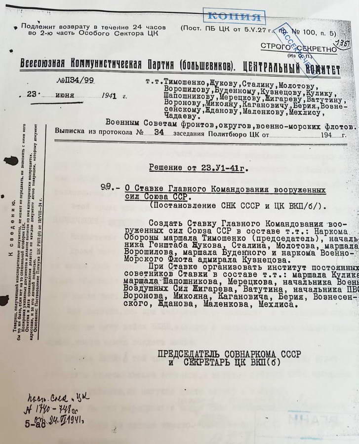 «Назначить Главнокомандующим войсками Юго-Западного направления Маршала Советского Союза т. С. Будённого с подчинением ему юго-западного и южного фронтов» (РГАНИ, ф. 3, оп. 50, д. 125, л. 93).