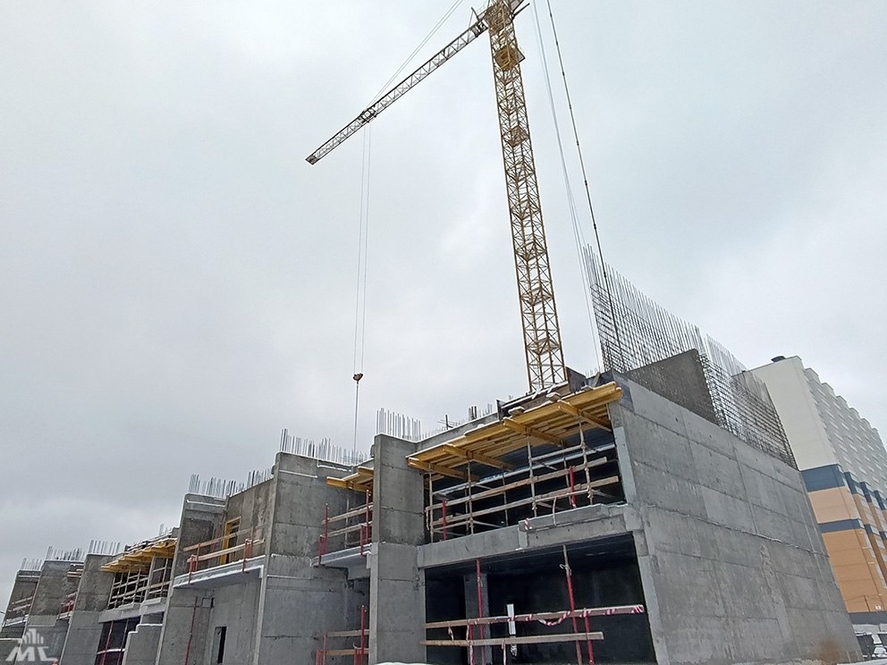 Квартал на улице Выготского в Новинках строят для нуждающихся. Что сейчас происходит на стройплощадке, рассказали в телеграм-канале «Минскстроя». Всего в этом квартале планируют построить больше ста тысяч квадратов жилья. Жилая застройка будет формироваться в пять этапов. Первой очередью возводят четыре жилых дома и объекты инженерно-транспортной инфраструктуры. Еще шесть высоток будут введены второй и третьей очередями, детсад на 350 мест и школа на 1020 — четвертой и пятой. — На жилом доме №11 по генплану монолитчики МСУ-23 выгоняют третий этаж, — говорят в «Минскстрое». — Работают вахтами в продленные смены по 12 часов, так что стройка не останавливается даже ночью. Дом сложный по конструктиву, сборно-монолитный — монолитные стены плюс сборные плиты перекрытий (производства ЗЭПК) и наружное заполнение стеновых проемов керамзитобетонными блоками. В первых числах декабря на объект заедут каменщики — начнутся кладочные работы. Дом №11 будет двухсекционным, на 150 квартир, на электроот