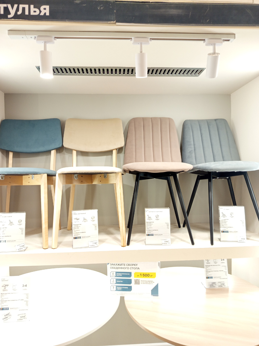 Здравствуйте🤝 Выспалась сегодня и, сделав все домашние дела, поехала в Лемана Про, Леруа который. Мне нужны новые стулья, да и так, по мелочи.. К новому году пока еще ничего не купила, приглядываться решила , что мне точно нужно будет , а то в порыве можно много накупить ненужного, как это обычно бывает у меня , потом это лежит, причем годами, а потом за ненадобностью выбрасывается. В ажиотаже я могу набрать и то , что не пригодится. Поэтому к подготовке украшения квартиры в этот раз подошла с разумом, что мне , собственно говоря ,не свойственно.😂 Стульев в Леруа выбор небольшой , но я их рассматривала в маркет плейсе давно, и поэтому решила брать такие. В сером цвете в наличии не оказалось, но и беж неплохо смотрится. Я немного поворчала на консультанта , что , мол, вон они у вас , в выставочном зале , в количестве шести штук. Нельзя , как мне объяснила консультант. Они уже собраны , я бы и такие забрала. Но , пришлось так оформлять заказ, ждать в пункте выдачи товаров, а пока пошла