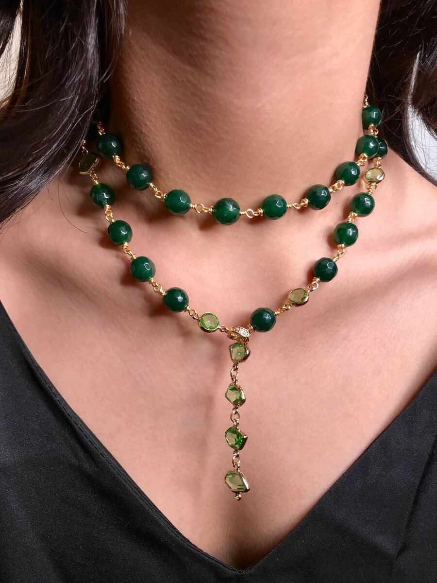 Яркий и стильный сотуар с зелёными агатами настоящая находка для любителей зелёных оттенков в камнях