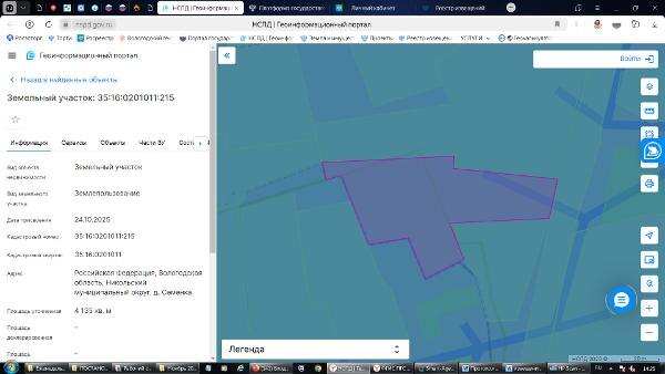 Название: Кадастровый номер – 35:16:0201011:215 Местоположение: Российская Федерация, Вологодская область, Никольский муниципальный округ, д. Семенка Площадь – 4135 кв. м. Вид разрешенного использования – для ведения личного подсобного хозяйства(приусадебный земельный участок) Категория земель - земли населенных пунктов Ограничения и обременения: не установлены Вид права: собственность Канал: Госземля Вологодская область Область: обл. Вологодская Район: м.о. Никольский Населенный пункт: д. Семенка Локация: Смотреть на карте ВРИ: Для ведения личного подсобного хозяйства (приусадебный земельный участок) Кадастровый номер: 35:16:0201011:215 Кадастровая стоимость: - Вид сделки: Продажа Площадь: 4135 м² Начальная цена: - руб. Дата завершения: 28.12.2025 Подробнее: ГИС ТОРГИ #госземля #земляотгосударства #земля #земельныйучасток #земельныеторги #торги #аукцион #продажаземли #продажа #вологодскаяобласть