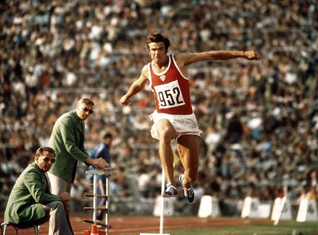 Тренеры по всему миру разбирали его прыжки на кадрах киноплёнки! Спортивный гигант из солнечного Сухума 🔥👇 . Когда речь заходит о величии советского спорта, имя Виктора Санеева звучит особо — трёхкратный олимпийский чемпион в тройном прыжке. Он родился в 1945 году в Сухуме. Его путь в большой спорт начался не с триумфов, а с упорной работы: первые серьёзные тренировки, поиск собственного стиля, отработка каждого движения. Тройной прыжок — дисциплина, где важны не только сила и скорость, но и филигранная техника: «скачок‑шаг‑прыжок» должны сливаться в единый, почти танцевальный ритм. Его олимпийская эпопея — это триумф длиною в целое десятилетие: Мехико‑1968: первая олимпийская золотая медаль. Санеев не просто победил — он установил мировой рекорд (17,39 м), ошеломив мир. Мюнхен‑1972: второе золото. Даже под давлением ожиданий он снова оказался вне конкуренции. Монреаль‑1976: третье золото. К этому моменту Санеев уже был живой легендой, но доказал: его рано списывать со счетов. Мос