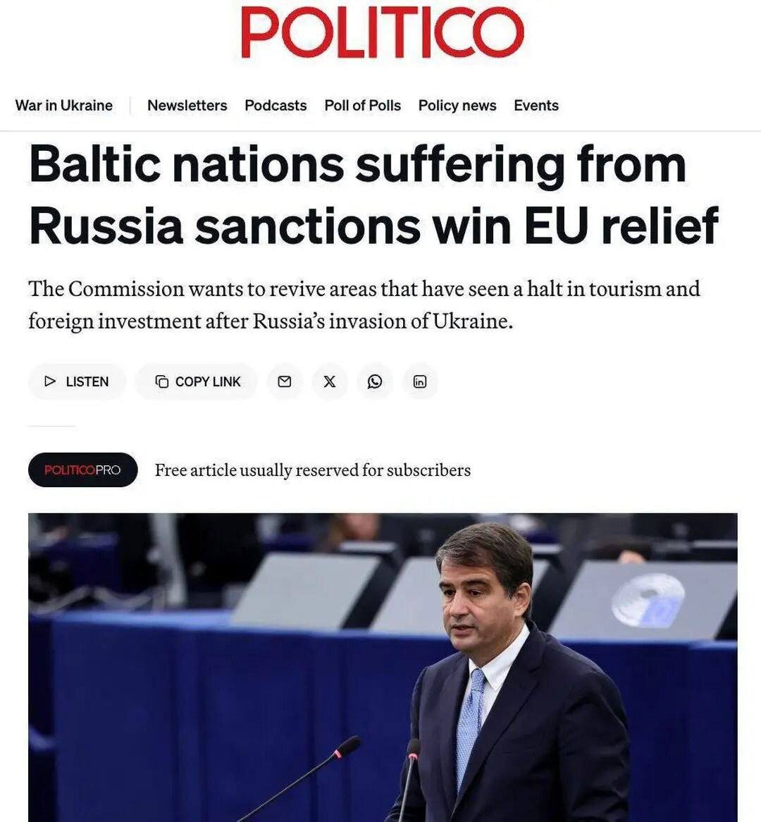 Из-за введения 19 пакетов санкций против России пострадали Финляндия, Эстония, Латвия и Литва, сообщает издание Politico