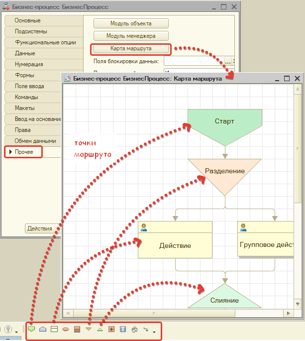1С:Специалист по платформе - БП: 2. карта маршрута