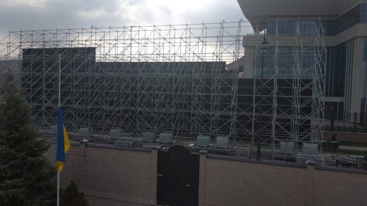 Журналисты, прибывшие на саммит заметили одну очень интересную ситуацию. Новая резиденция находится недалеко от посольства Украины в Кыргызстане и возле резиденции, как раз со стороны посольства возвели огромный экран. Конструкция полностью закрывает здание посольства и флаг Украины.