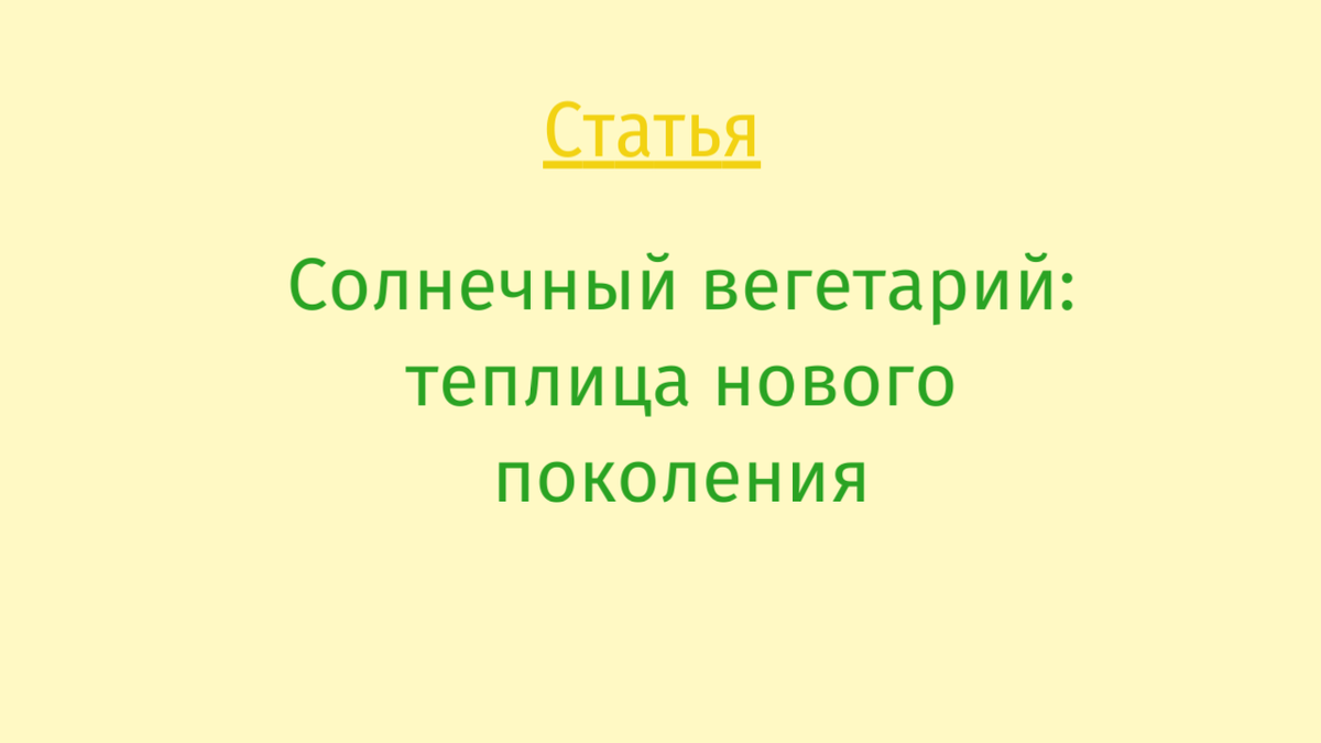 Построив новую теплицу, я задумался о том, как можно получать более ранний урожай, потратив на отопление меньше средств. Так как я проживаю в южном районе нашей необъятной России, то свой вегетарий соорудил в этой же теплице. Хотя район у нас южный, но морозы бывают и у нас, а весною и заморозки. Поэтому приходится протапливать теплицу весной в ночное время, а иногда и днем. Для сохранения тепла в теплице и был сооружен солнечный вегетарий для сбора тепла. В моей теплице шириной 3,5 м имеется 4 грядки длиной 10 м. По всему периметру теплицы и в центре под грядками были прокопаны траншеи глубиной 30 см, в которые были заложены полиэтиленовые канализационные трубы диаметром 110 мм. Эти трубы через канализационные фитинги 110 мм соединялись в единый контур, на противоположной стороне от входа через тройник в контуре был установлен стояк высотой 2,3 м, не доходя до крыши теплицы 40 см. В этот стояк сверху был установлен канальный вентилятор. Теперь подробно хочу пояснить, как произ