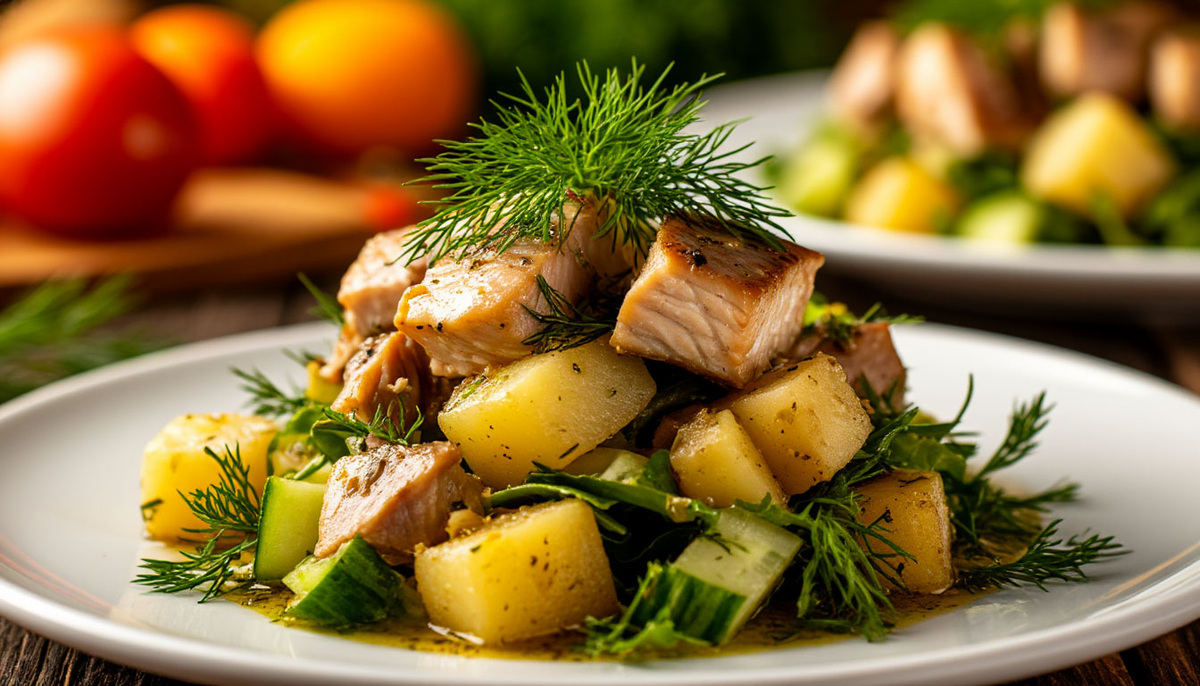 Здравствуйте, дорогие гурманы и любители всего вкусненького! Ищете новый, не “заезженный” рыбный салат на праздничный стол? Что-то такое, что удивит гостей и заставит их просить у вас рецепт? Тогда отложите в сторону привычную “Мимозу” и “Селедку под шубой”. У меня для вас есть настоящая бомба — праздничный салат из скумбрии горячего копчения! Это не просто салат, это фейерверк вкуса! Благородный, дымный аромат скумбрии, хрустящие огурчики, нежность картофеля и яиц, пикантная заправка… Поверьте, попробовав его один раз, вы влюбитесь навсегда. Он выглядит ярко, готовится просто и съедается до последней ложки. Готовы приготовить салат, который станет звездой вашего стола? Что нам понадобится: 🐟 Скумбрия горячего копчения: 1 средняя рыбка (около 300-350 г) 🥔 Картофель: 2-3 средние шт. 🥚 Яйца: 3 шт. 🥒 Свежий огурец: 1-2 шт. (для хруста и свежести!) 🧅 Красный (салатный) лук: 1 маленькая головка 🍏 Зеленое кислое яблоко (типа Гренни Смит): 1/2 шт. (Это секретный ингредиент, который иде