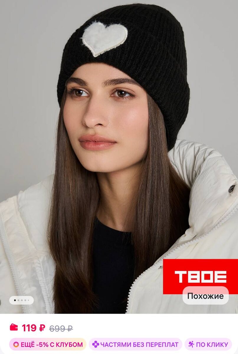 ТВОЕ Вязаная шапка осенняя с плюшевым сердцем