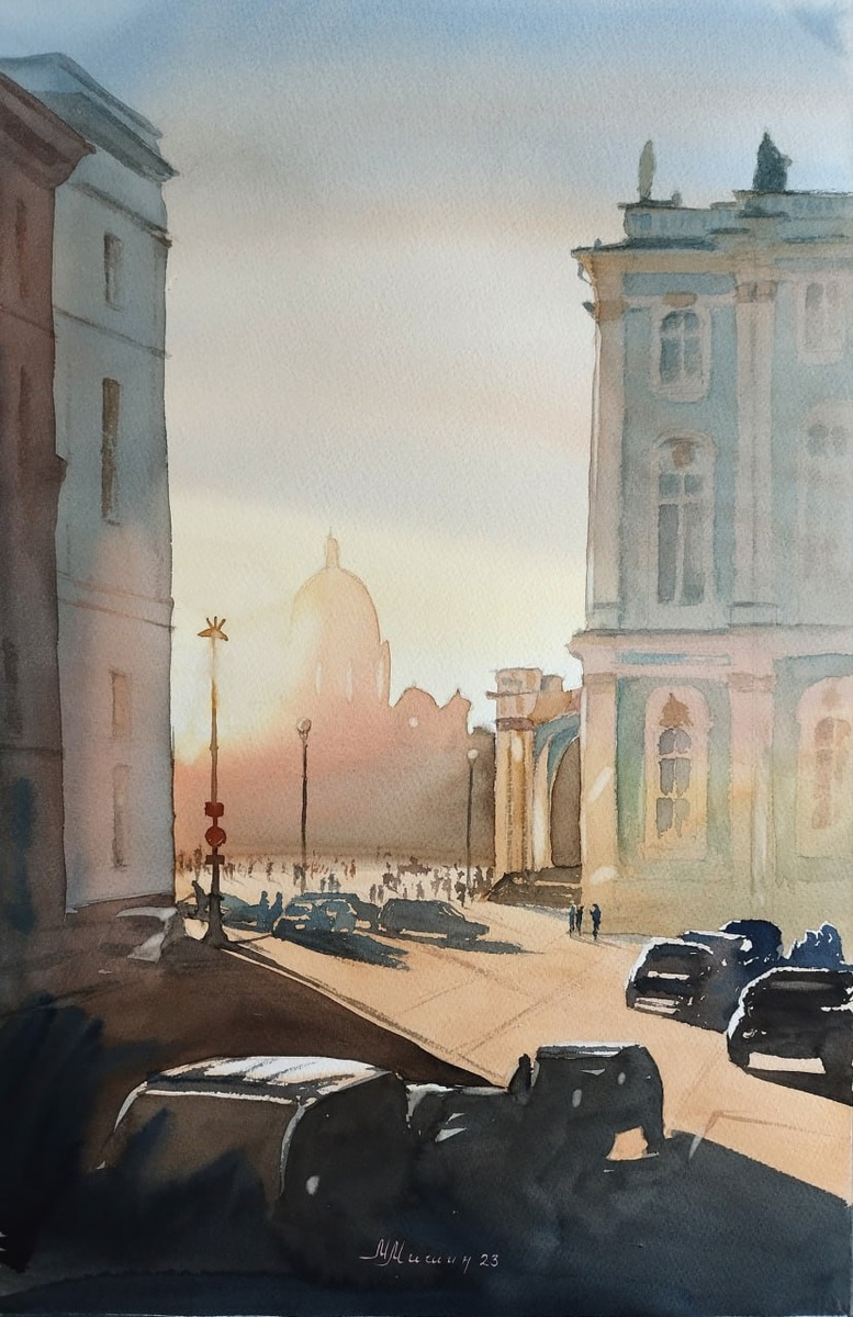 Прозрачность цвета и света🇷🇺 Максим Мишин — современный российский художник-акварелист, член Союза акварелистов России и участник международного акварельного общества IWS globe. Его работы отличаются прозрачностью и воздушностью, а сюжеты часто включают пейзажи и архитектурные мотивы. Максим родился 7 февраля 1989 года. Он окончил СмолГУ (бывший СГПУ) и сейчас живет в Москве. Работает начальником дизайн-группы в Курчатовском институте, совмещая профессиональную деятельность с творчеством. Художник активно участвует в пленэрах и мастер-классах, как в России, так и за рубежом. Например, в ноябре 2025 года он провел онлайн-мастер-класс на Бали для IWCS, где рисовал рыбацкую лодку в ограниченной палитре из трех цветов, фокусируясь на тоне и пятнах. Его работы часто демонстрируют умение работать с цветом и светом, а также внимание к деталям. Более старые работы Максима на нашем 🔜 канале #Мастера_акварели Любители акварели