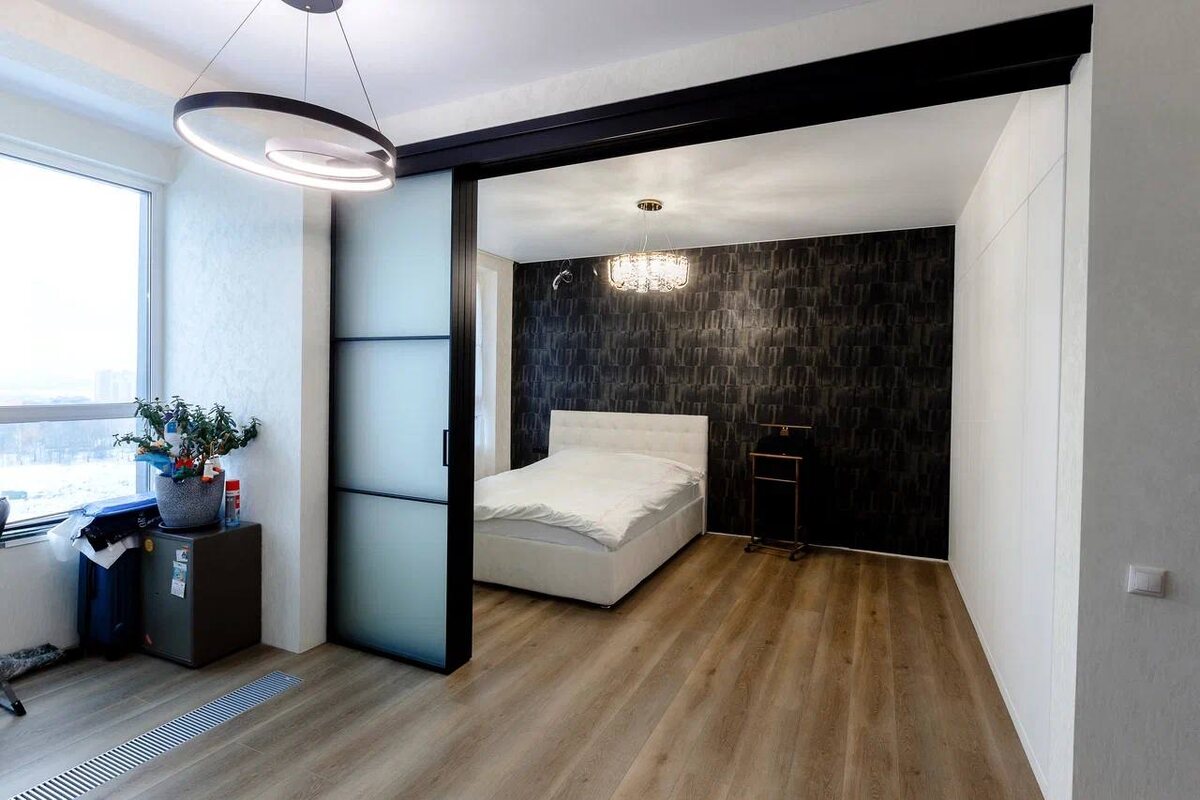 Профиль всего 11 мм! Данная перегородка из российского премиального алюминия — это всего 11 мм профиль. Раньше таким тонким у нас был только итальянский алюминий — 15 мм. А тут шаг вперёд, и довольно смелый. Высота конструкции — 2,5 м. Ширина створок — примерно 70–75 см. Цвет — чёрный матовый, глубокий, спокойный, архитектурный. Стекло каленое, матовое. Направляющие только сверху, система — каскадная, створки мягко скользят друг за другом, почти беззвучно. Самое приятное — визуальная лёгкость совсем не про хрупкость. Конструкция прочная, устойчивая и рассчитана на долгую жизнь❤️