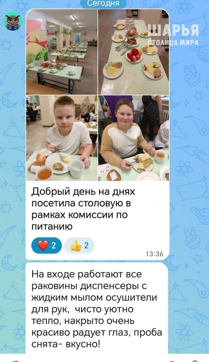В Шарье оценили качество школьного питания В школах города проходят важные встречи — родители оценивают организацию питания своих детей, обучающихся в том или ином образовательном учреждении. Положительные мнения и отзывы подтверждают приверженность качеству и заботу о здоровье детей. Родители проявили хорошую активность, откликнувшись на приглашение принять участие в оценке организации питания школьников. Например, 18 ноября в школе №7 проводилась оценка качества питания родителями обучающихся. Отзывы, которые родители оставили после посещения школьной столовой, были достаточно развернутыми и положительными. Так, одна из мам написала, что санитарные нормы все исполнены, еда выглядит привлекательно, на вкус - более, чем съедобна. Управление образования администрации Шарьи предлагает родителям/опекунам, у которых есть пожелания или отзывы по организации питания, обратиться в Комбинат школьного питания по телефонам: 5-18-36 и 5-86-54; или в Шарья – столица мира Крупнейшее городское С