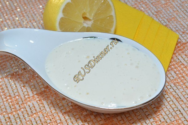 Домашний майонез «Провансаль» От автора: Домашний майонез «Провансаль» можно сделать погуще, если добавить немного больше растительного масла. Можно регулировать вкус, добавляя чуть меньше или больше специи. Можно в майонез добавить черный молотый перец. Чтобы вкус был более насыщенный, лимонный сок можно заменить столовым уксусом 9%, но добавить его нужно будет 1 ст. л. Хранить такой майонез желательно не больше трех дней. При таком количестве масла майонез получился немного жидковатым, но для заправки салатов подойдет идеально. Если хотите майонез намазать на хлеб или положить в суп добавляйте больше растительного масла. Ингредиенты: Яйцо - 2 шт. Горчица - 4 гр. (1 ч. л.) Соль - 5 гр. (0,5 ч. л.) Сахар - 5 гр. (0,5 ч. л.) Лимон - 1 шт. (сок, 2 ст. л.) Масло растительное - 220 мл. Источник: https://rusdinner.ru/page/domashnij-majonez-provansal