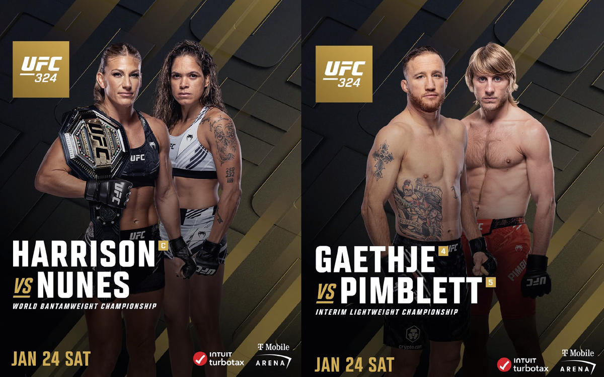 UFC 324: Гэтжи vs. Пимблетт станет историческим событием для организации. Это будет первый турнир в рамках нового медиапартнерства с Paramount+, который ознаменует конец эры платных трансляций (PPV). Главным событием вечера станет бой за временный титул легковеса между Джастином Гэтжи и быстро восходящей звездой Пэдди Пимблеттом. В со - главном событии чемпионка в легчайшем весе Кейла Харрисон проведет первую защиту пояса против возвращающейся в октагон легенды MMA Аманды Нуньес. Основное событие: Джастин Гэтжи против Пэдди Пимблетта Решение о создании временного титула было принято в связи с тем, что действующий чемпион в легком весе Илия Топурия объявил, что не сможет выходить в октагон в первом квартале 2026 года из-за личных обстоятельств. Победитель боя между Гэтжи и Пимблеттом получит временный пояс и станет официальным претендентом на бой-объединитель с Топурией позже в 2026 году. Соглавное событие: Кайла Харрисон против Аманды Нуньес Этот бой называют, возможно, самым громким ж
