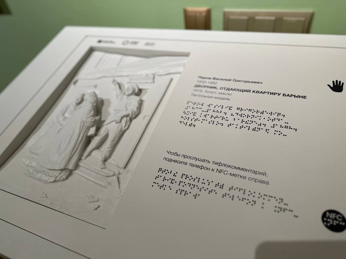 В постоянной экспозиции Ярославского художественного музея «Русское искусство XVIII — начала XX века» установлены новые тактильные модели известных произведений живописи. Теперь незрячие и слабовидящие посетители смогут прикоснуться к объёмным версиям картин «Буря на Азовском море в апреле 1886 г.» Ивана Айвазовского, «Дворник, отдающий квартиру барыне» Василия Перова, «Цветы. Гурзуф» Константина Коровина и «Портрету А. Е. Ленивова с женой», Создание тактильных копий стало возможным благодаря победе музея в грантовом конкурсе программы «Особый взгляд» благотворительного фонда «Искусство, наука и спорт». Руководитель программы Владимир Плехов отметил, что фонд помогает музеям не только изготавливать модели, но и формировать методики работы с аудиторией. «Сама по себе тактильная копия экспоната — это всего лишь ресурсозатратная технология. Мы же помогаем музеям не только создать макеты, но и грамотно использовать и расширять методики работы с аудиторией незрячих и слабовидящих посетителе