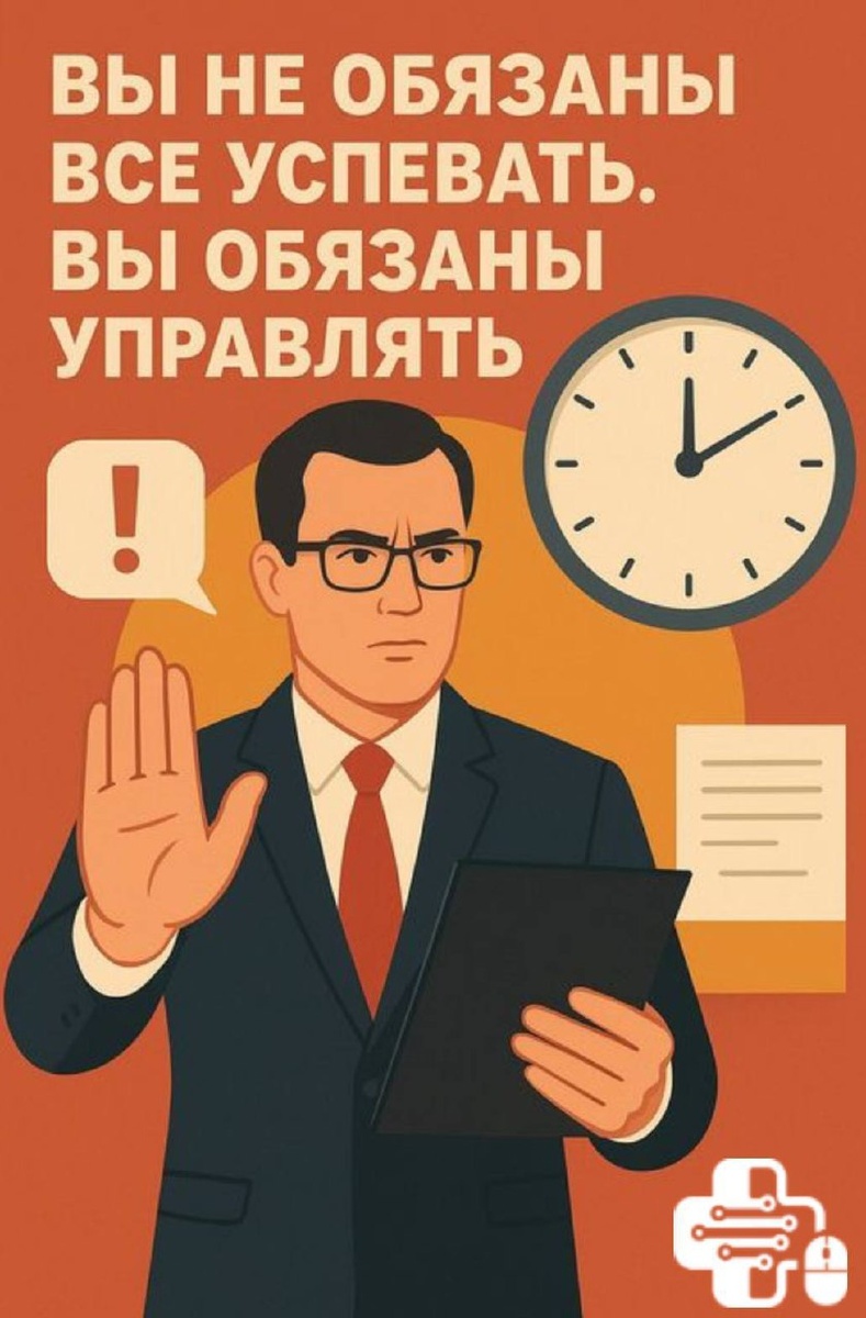 ❗️Вы не обязаны все успевать. Вы обязаны управлять. Навык рационального использования времени — это про управление вниманием, а не про попытку «успеть всё». Руководитель живет в постоянном потоке запросов, и выигрывает тот, кто умеет выбирать, а не бесконечно реагировать. Чем выше зона ответственности, тем меньше собственных часов и тем больше решений. Поэтому тайм-менеджмент превращается в технологию отбора. ⚡️ Три принципа управленца, который владеет своим временем 1. Матрица Эйзенхауэра. Разделяйте срочное и важное. Чтобы управлять желательно фокусироваться на квадранте «важное, но не срочное»: развитие команды, улучшение процессов, подготовка к рискам. Это зона, где формируется результат, а не только тушатся пожары. Именно здесь рождается стратегический результат. 2. Золотой час. Первые 60 минут дня — для стратегии: планирование, анализ ключевых показателей, приоритеты. Никаких почт и чатов. Золотой час определяет, вы управляете днем или день управляет вами. 3. Делегирование р