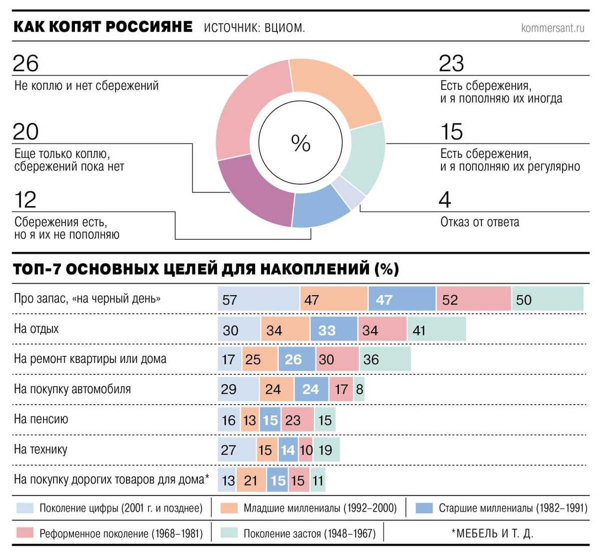 Как копят россияне? Спойлер: 26% не копит и никаких сбережений не имеет.