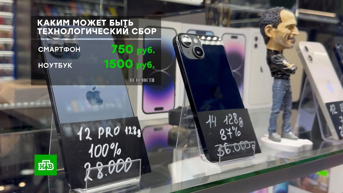 [ Смотреть видео на сайте НТВ ] Такие суммы указаны в предложении Минпромторга. Об этом изданию «Ведомости» сообщили источники из сферы производства электроники. Предварительные ставки были указаны в предложении Минпромторга, направленном для обсуждения участникам консорциума «Вычислительная техника» (АНО ВТ). Перечни промышленной продукции и компонентов, по которым будут взимать технологический сбор установит правительство. Технологический сбор с ноутбуков могут утвердить на уровне 1500 руб., а с телефонов — 750 руб. Собеседники издания уточняют, что суммы — предварительные, так как окончательное решение по размерам техсбора еще не принято, итоговые тарифы утвердит правительство. Источник, близкий к кабмину, сообщил, что технологический сбор будут вводить поэтапно. Сначала тарифом обложат готовую электронную аппаратуру (ноутбуки, смартфоны, светотехнические товары), а после техсбор будет введен для электронных компонентов и модулей, которые входят в состав аппаратуры. По словам минист