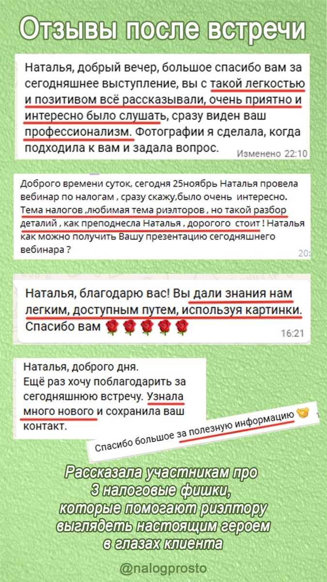 👮 Меня задержали на 2,5 часа. И я не жалуюсь, это был кайф. 25 ноября выступала на живом мероприятии в Москве, организованном Метром Квадратным и ВТБ. В зале было более сотни риэлторов, агентов, всех, кто связан со сделками с недвижимостью. На мою тему про налоги при продаже недвижимости было запланировано 1,5 часа. Но аудитория меня просто не отпускала: вопросы сыпались один за другим, атмосфера была невероятно тёплая. В итоге 2,5 часа пролетели как один миг. 🔥 О чём спрашивали больше всего? 👉 Про налоговые вычеты. Кому положены, кому нет, как их правильно использовать, какие нюансы учесть. И самым большим удивлением было, что вычеты положены ВСЕМ: даже ИП на УСН, самозанятым, пенсионерам, мамочкам в декрете... Люди искренне не понимают, что у них может быть "тот самый НДФЛ", который можно вернуть или уменьшить. 👉 Про новые изменения в налогах. Всё, что касается обновленных расчетов сроков владения, коэффициентов кадастровой стоимости при определении налоговой базы при прода