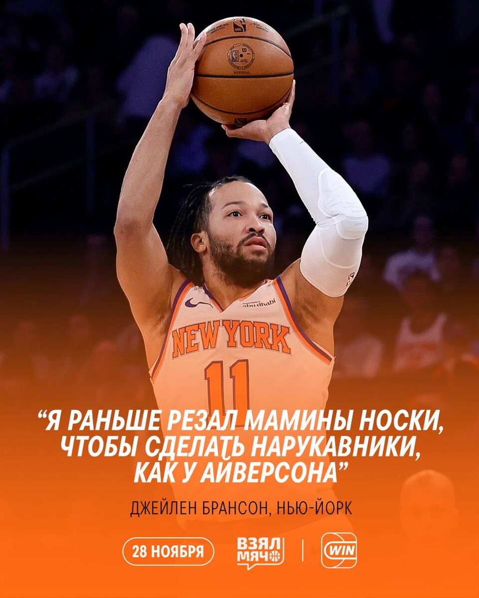 🤩 Джейлен Брансон рассказал, какое влияние на него оказал Аллен Айверсон 🗣 «Оно огромное. Я раньше резал мамины носки, чтобы сделать нарукавники, как у Айверсона. Он сильно повлиял на мою жизнь. Он один из величайших, без сомнения» А вы что использовали в качестве нарукавника? И не говорите, что не хотели такой же 😜 🏀 ПОДПИШИСЬ — ЗДЕСЬ ЖИВЁТ БАСКЕТБОЛ!