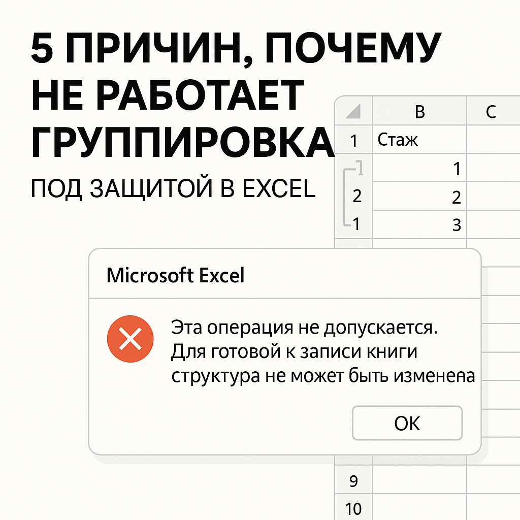Группировка не работает в защищённой книге Excel? Объясняю просто и профессионально: почему ломается структура, как правильно включить вкладку «Структура», какие настройки защиты нужно активировать, почему обычная защита листа блокирует группировку, как это исправить и какой VBA-макрос использовать для автоматизации. Пошаговая инструкция, примеры, практические советы.