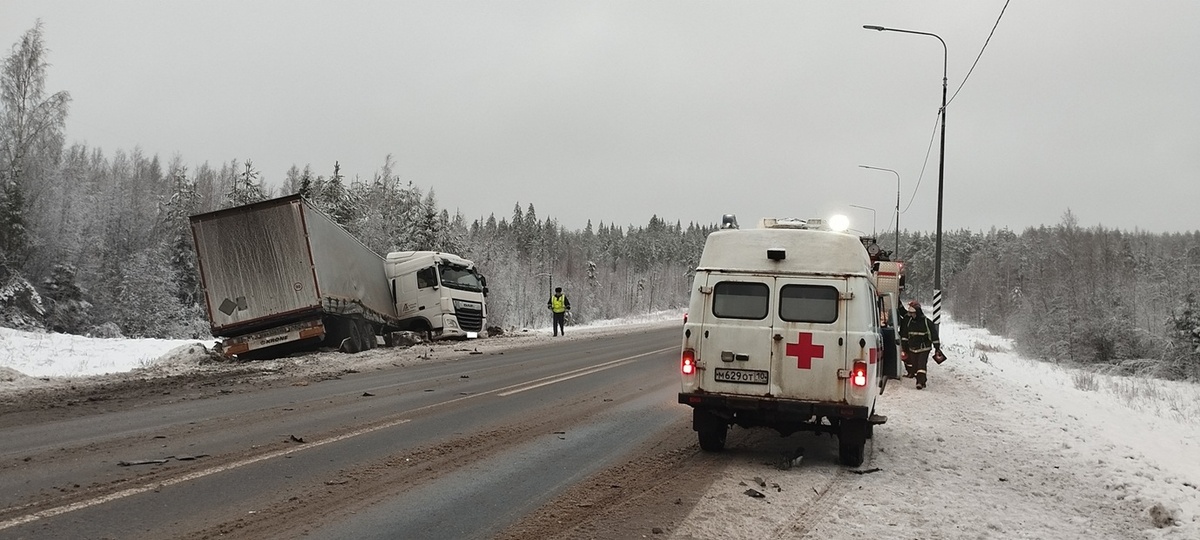 Фура вылетела в снежный кювет после утренней аварии на трассе «Кола»