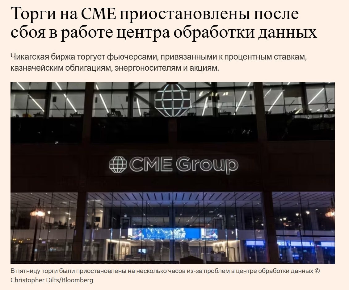 Просто наблюдение Торги фьючерсами и опционами на CME, крупнейшей в мире бирже деривативов, были приостановлены в пятницу на несколько часов из-за сбоя в центре обработки данных «Из-за проблем с охлаждением в центрах обработки данных CyrusOne наши рынки в настоящее время приостановлены», — говорится в заявлении CME, опубликованном утром в пятницу https://www.ft.com/content/3332da74-d961-4b7f-a503-11d55d93b7c8 P.S. С учетом недавнего фейла CloudFlare, из-за которого вышла из строя половина интернета, безумные инвестиции в ЦОДы — абсолютно разумное и дальновидное решение [нет] @marketheart