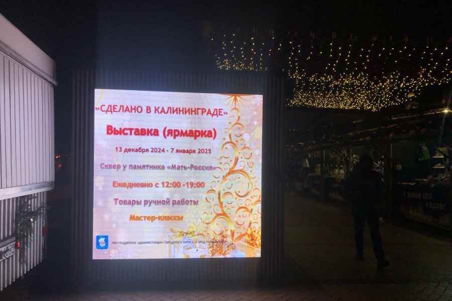 В областном центре вновь пройдёт традиционная зимняя выставка-ярмарка ремесленников «Сделано в Калининграде». Об этом сообщила пресс-служба горадминистрации. Ярмарка будет работать в сквере у монумента «Мать — Россия» с 12 декабря 2025 года по 11 января 2026-го. «Как и в прежние годы, торговые места участникам администрация города предоставляет бесплатно», — добавили в пресс-службе. Подробности можно уточнить по телефону +79005674071. Ярмарку «Сделано в Калининграде» традиционно проводят два раза в год. В январе стало известно о том, что власти планируют предоставлять торговые места для ремесленников в течение всего лета. Павильоны для этих целей горадминистрация закупила в конце 2023 года. Последняя подобная ярмарка прошла в сквере у монумента «Мать-Россия» с 1 июня по 31 августа 2025 года.
