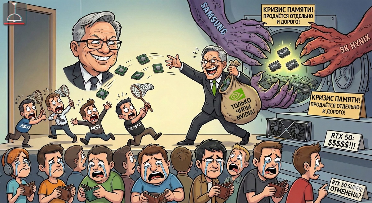 ~ Дешёвые видеокарты от зелёных, вероятно, ВСЁ: NVIDIA больше не будет поставлять видеопамять в комплекте со своими чипами AMD думаю тоже не останется в стороне, они уже успели анонсировать повышение цен на 10% ... Их жадности, нет предела. Хорошо конечно я успел закупиться на годы вперёд. Кризис оперативной памяти затронул и видеопамять — её производят те же компании: Micron, SK Hynix и Samsung. Теперь NVIDIA будет отправлять только графические чипы, а память уже придётся докупать отдельно производителям видеокарт, утверждают инсайдеры. В итоге конечная цена вырастет ещё сильнее, а небольшие вендоры вовсе могут не пережить таких перемен. Ко всему прочему, новая серия RTX 50 Super может задержаться или вообще быть отменена: всё из-за лютого дефицита GDDR7 — при этом обычные RTX 50 сильно подорожают. @plafon #nvidia #amd