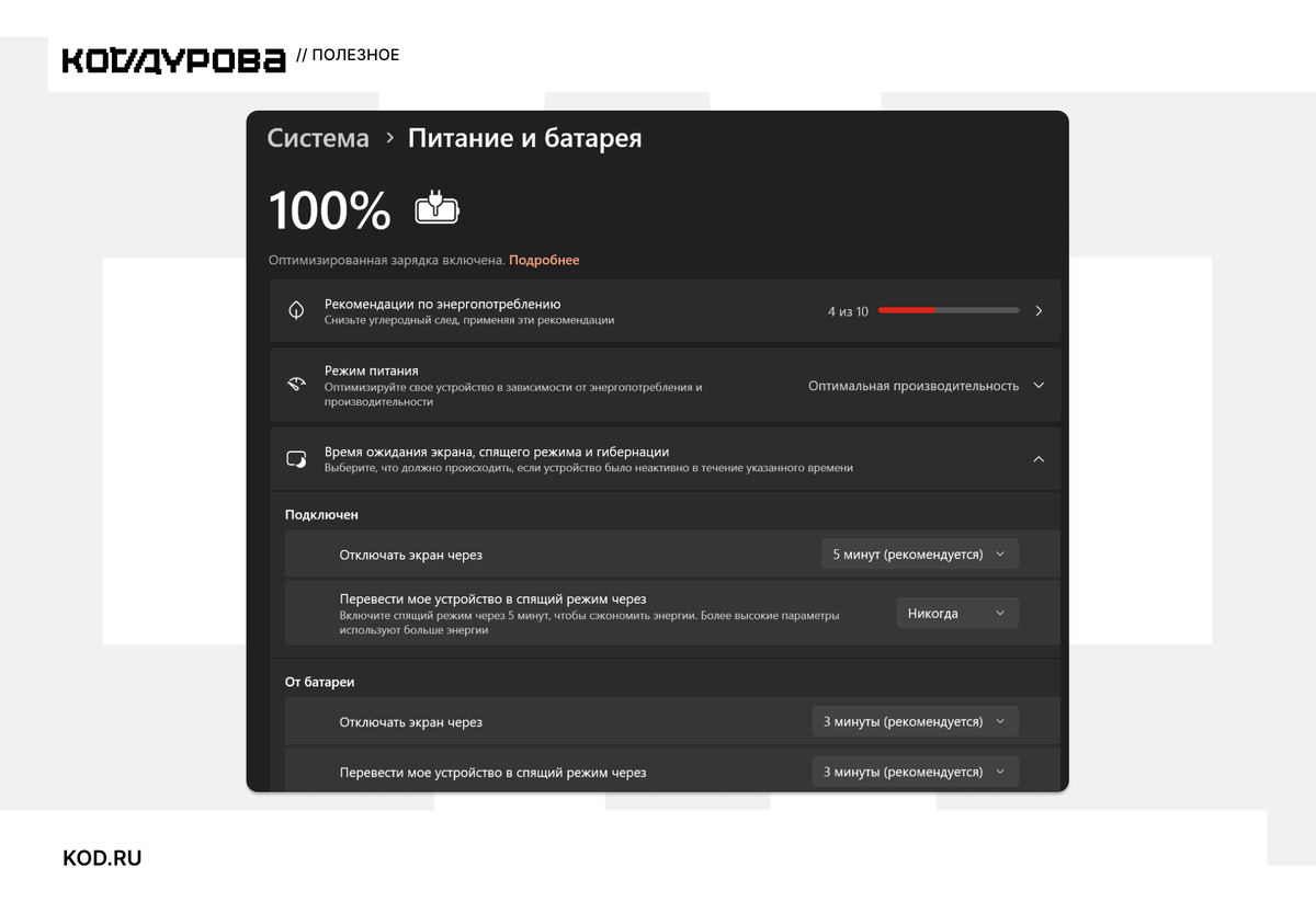 Спящий режим — полезная функция энергосбережения, которая автоматически «усыпляет» ноутбук при бездействии.