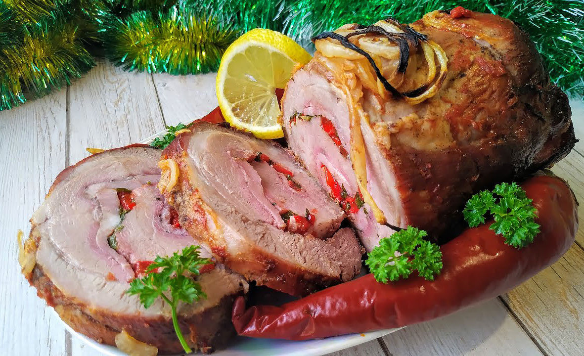 Первый раз я увидела этот рулет на своём восьмилетии. Бабушка внесла его на большом фарфоровом блюде, украшенном веточками петрушки, и все ахнули. Разрезанный на ломтики, он напоминал праздничный калейдоскоп – розовое мясо обнимало золотистую начинку из яиц и моркови, а аромат чеснока и специй заполнял всю комнату.