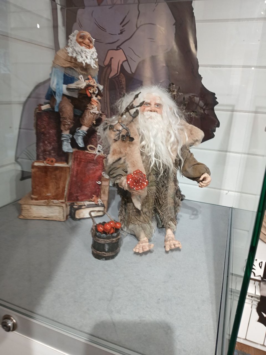 А вот здесь я слегка удивилась. Выставка ведь посвящена русским народным сказкам. Но здесь как- то оказались герои сказок Пушкина.