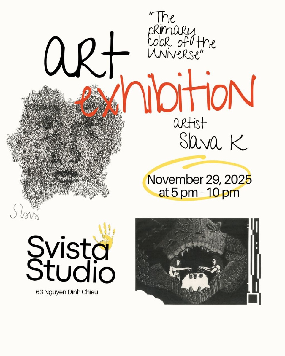 🎨 АРТ-ВЫСТАВКА В МУЙНЕ! Svista Studio открывает свою третью выставку и приглашает вас стать её частью. ❤️ Наше творческое сообщество растёт, и каждая новая выставка — это ещё один шаг вперёд. Мне всегда хочется показывать в МуйНе сильные, нестандартные работы, и эта выставка — именно такая. 🖤 29 ноября | 17:00–22:00 Открытие выставки «Основной цвет Вселенной» художника Slava K. Более 20 работ, созданных в 2022–2025 годах. Это смелая попытка увидеть мир через один-единственный цвет — чёрный. Глубокий, эмоциональный, многослойный. Такой, который заставляет остановиться и почувствовать. ✨ В программе: ▫️Презентация работ от художника ▫️Живое выступление на скрипке — Мария Веббер ▫️Фуршет: закуски, шампанское, безалкогольный пунш 🔹️На выставке вы сможете приобрести оригинальные картины, принты и открытки. ▪️Вход свободный. ▪️Возраст 14+. 📍Svista Studio 63 Nguyen Dinh Chieu