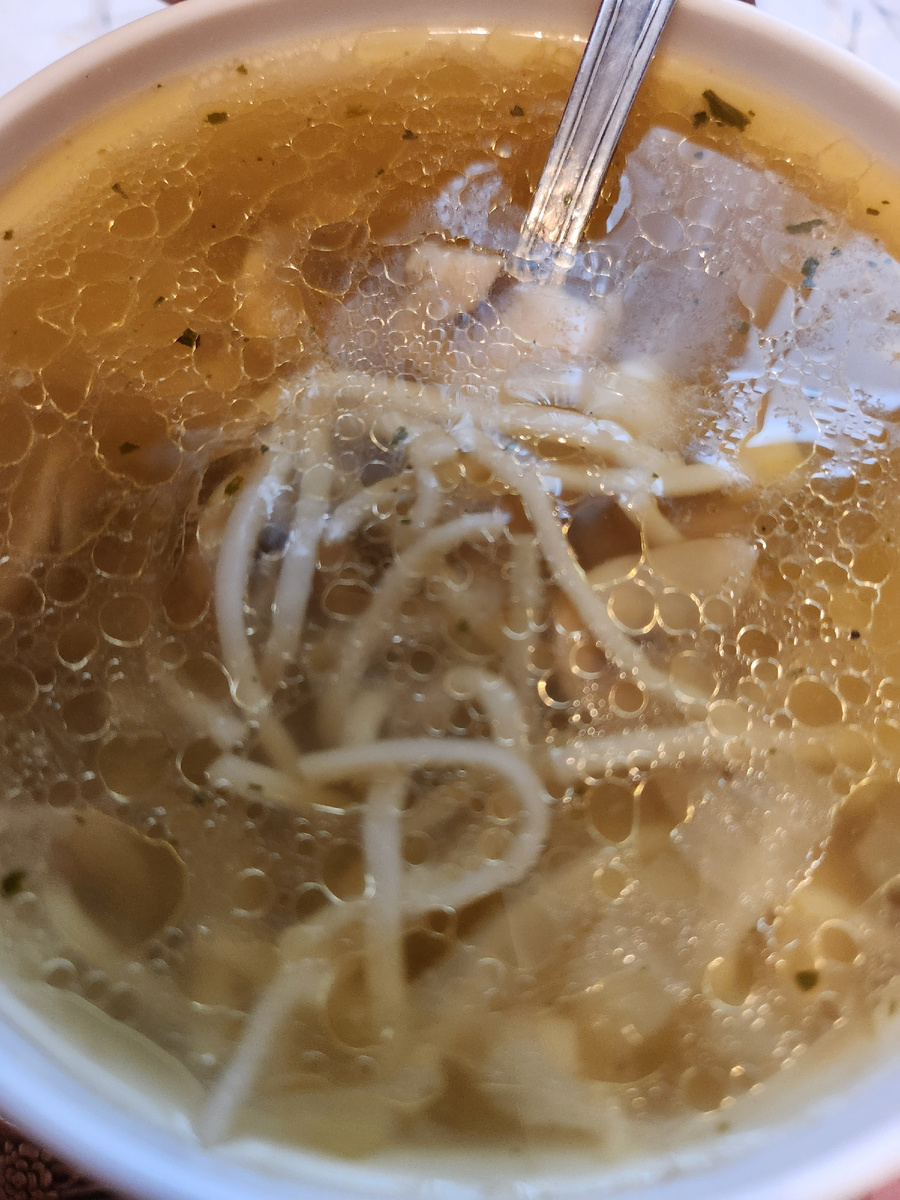 Добрый день, мои дорогие читатели. Иногда, в суматохе подготовки к праздникам некогда долго готовить, и в этот момент быстрый и сытный супчик очень удобен для обеда или лёгкого ужина. В кастрюлю 3,5 литра наливаем воду и кладем мелко нарезанный картофель.Около полукилограмма. Воду немного подсолим. Пока картофель варится, пассеруем на растительном масле две большие луковицы. Добавляем туда 600 граммов нарезанный пластинками шампиньонов. Их нужно вымыть, а вот варить предварительно не надо. Тушим шампиньоны минут и опускаем их к картофелю. Варим пару минут и добавляем лапшу. Лапша может быть любая: домашняя, покупная, вплоть до лапши из коробки или обычной вермишели. У меня лапша самодельная. Мы её делаем сразу много, суши, расфасовываем по стеклянным банкам и храним на балконе. Так она всегда под рукой. Ждём, пока лапша всплывёт и выключаем суп. Отлично идёт со сметаной и зеленью. Можно, конечно, и из лесных грибов, но в этом году у нас их не было, а вот с опятами так в