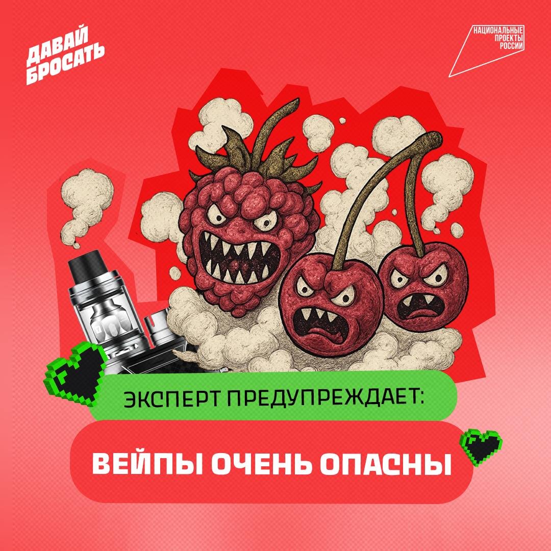 😶🌫️ Вейпы — небезопасная альтернатива обычным табачным изделиям. На самом деле они могут наносить организму в два-три раза больше вреда. 👨⚕️Доцент кафедры педиатрии Павел Бережанский отмечает, что электронки сильно повреждают лёгкие и другие органы, а «болезнь вейперов» (EVALI) может развиться уже через три месяца. 🍒 Сладкий вкус и аромат привлекают подростков, а вещества в паре — пропиленгликоль, глицерин и витамин Е — оседают глубоко в лёгких. У взрослых их полное выведение почти невозможно, у подростков есть резерв до 21 года. Отказ от вейпа помогает восстановлению дыхательных путей уже через 120 дней. Главное — осознать последствия и заменить привычку на полезное занятие. Если уже это сделал, ставь лайк ❤️ #слово_эксперту
