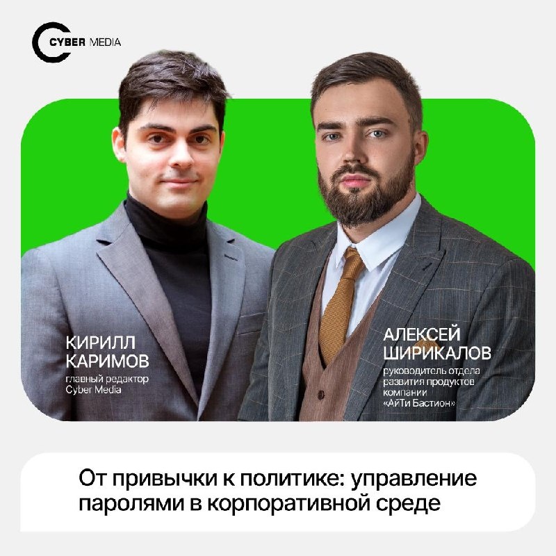▶️ Четырнадцатый выпуск нашего подкаста уже доступен в VK, в YouTube и в Rutube. 👀 Переходите по ссылке, смотрите и оставляйте свои комментарии. Нам очень важно ваше мнение. 🗣 Гостем выпуска стал: Алексей Ширикалов, эксперт компании «АйТи Бастион», руководитель отдела развития продуктов. Обсудили с экспертом вопросы организации хранения и использования паролей в корпоративной среде.