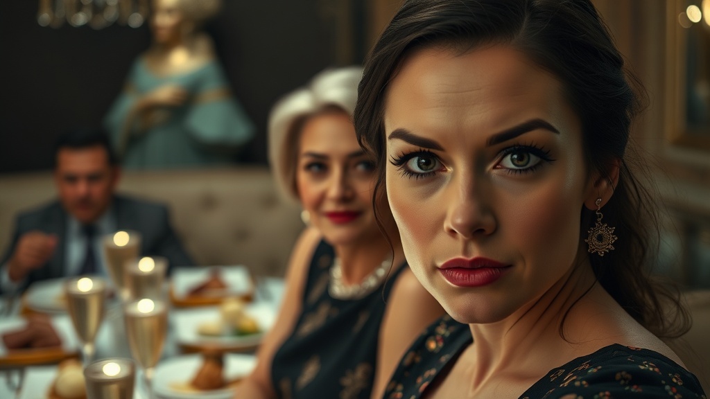 Вечер тянулся мучительно медленно. Гости сидели за огромным, накрытым белоснежной скатертью столом. Всё было роскошно. Хрусталь, серебро, фарфор. Но атмосфера была такой напряжённой, что, казалось, можно резать её ножом. Я чувствовала себя экспонатом под стеклом. Каждый мой жест, каждое слово рассматривались под микроскопом.