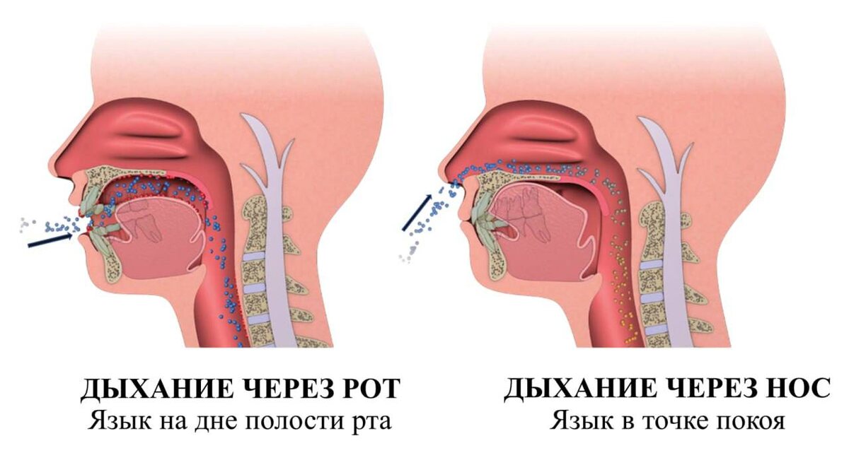 А вы задумывались, почему так важно дышать именно через нос, а не через рот? Когда воздух проходит через носовые ходы и пазухи, он не просто попадает в организм — он проходит естественную фильтрацию. В носу воздух увлажняется, очищается от пыли, аллергенов и бактерий, а также согревается до комфортной температуры. Такой воздух гораздо безопаснее и полезнее для дыхательных путей и всего организма. Если же вы или ваш ребёнок дышите через рот, всё происходит иначе: в лёгкие поступает сухой, холодный и неочищенный воздух. Это увеличивает риск простуд, частых насморков, першения и боли в горле по утрам. Ротовое дыхание может способствовать развитию хронических воспалительных заболеваний горла и даже ухудшать качество сна. Но мало кто знает, что дыхание через рот влияет не только на здоровье носоглотки, но и на формирование лица и прикуса. Постоянно открытый рот, неправильное положение языка и отсутствие естественного сопротивления воздуха могут привести к неправильному развитию средней и ни