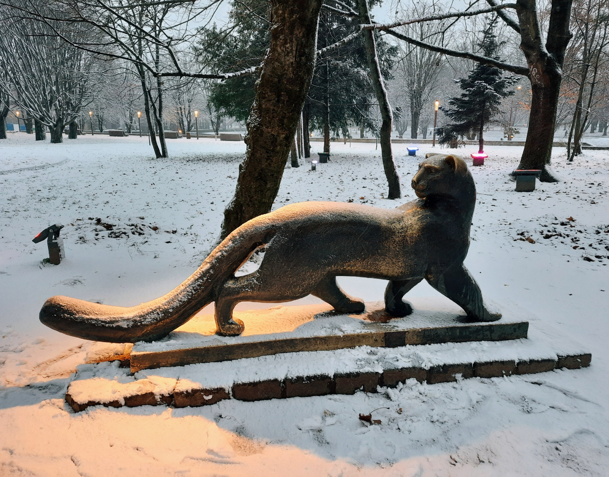 Пока первый снег еще не растаял, мы с мужем решили прогуляться на остров Канта. Там всегда много интересного! Нас встретила моя любимая пантера с роскошным хвостом, припорошенная снегом. Любителям зимнего отдыха предлагается полежать под снегом на шезлонге. Или позагорать в свете фонаря. В последние несколько лет остров Канта преобразился, появилось много новых ландшафтных композиций, в которых используются пышные декоративные злаки. Кафедральный собор прекрасен в любое время года. А эти фото я сделала чуть раньше, до того, как всё засыпало снегом. Иней на хвойных веточках можжевельника похож на настоящие кружевные узоры. Наступление зимы чувствуется все более отчетливо. И не удивительно, ведь уже практически декабрь.