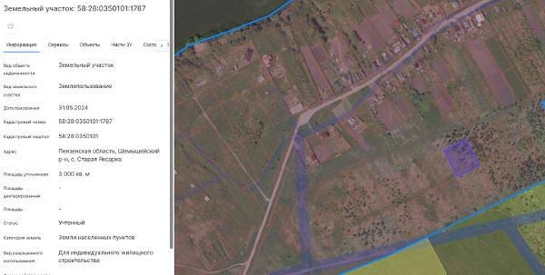 Название: Земельный участок из земель населенных пунктов с кадастровым номером 58:28:0350101:1787, общей площадью 3000 кв.м., с видом