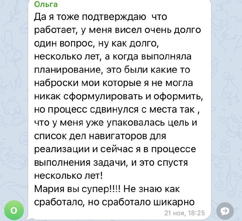 Почему планирование работает? Планирование помогает удерживать фокус на важных для нас вещах, а где фокус, там и внимание, где внимание, там и изменения. А если делать все это в отличной компании, то бонусом получаешь поддержку и позитивный пример рядом! Благодарю Ольгу за отзыв и приглашаю всех присоедениться к группе планирования 2026 года! Мы начинаем уже в этот понедельник! Все условия участия можно посмотреть в этом посте. Всех обнимаю, всем отличного уикенда! #группы_отзыв