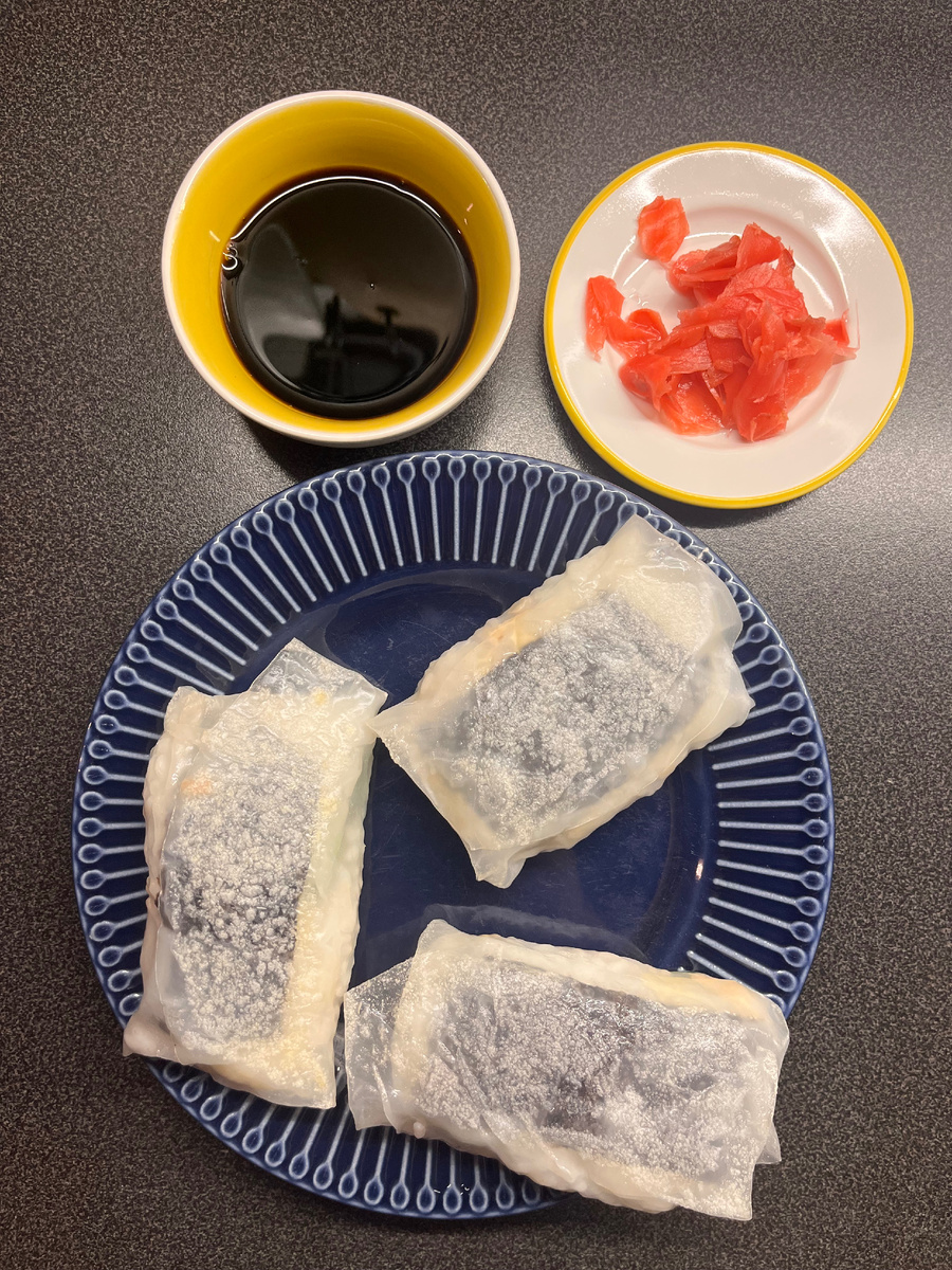 - Размягчение бумаги: Окуните лист рисовой бумаги в теплую воду буквально на 2–3 секунды. Он должен стать мягким, но не мокрым. Выложите на ровную рабочую поверхность.