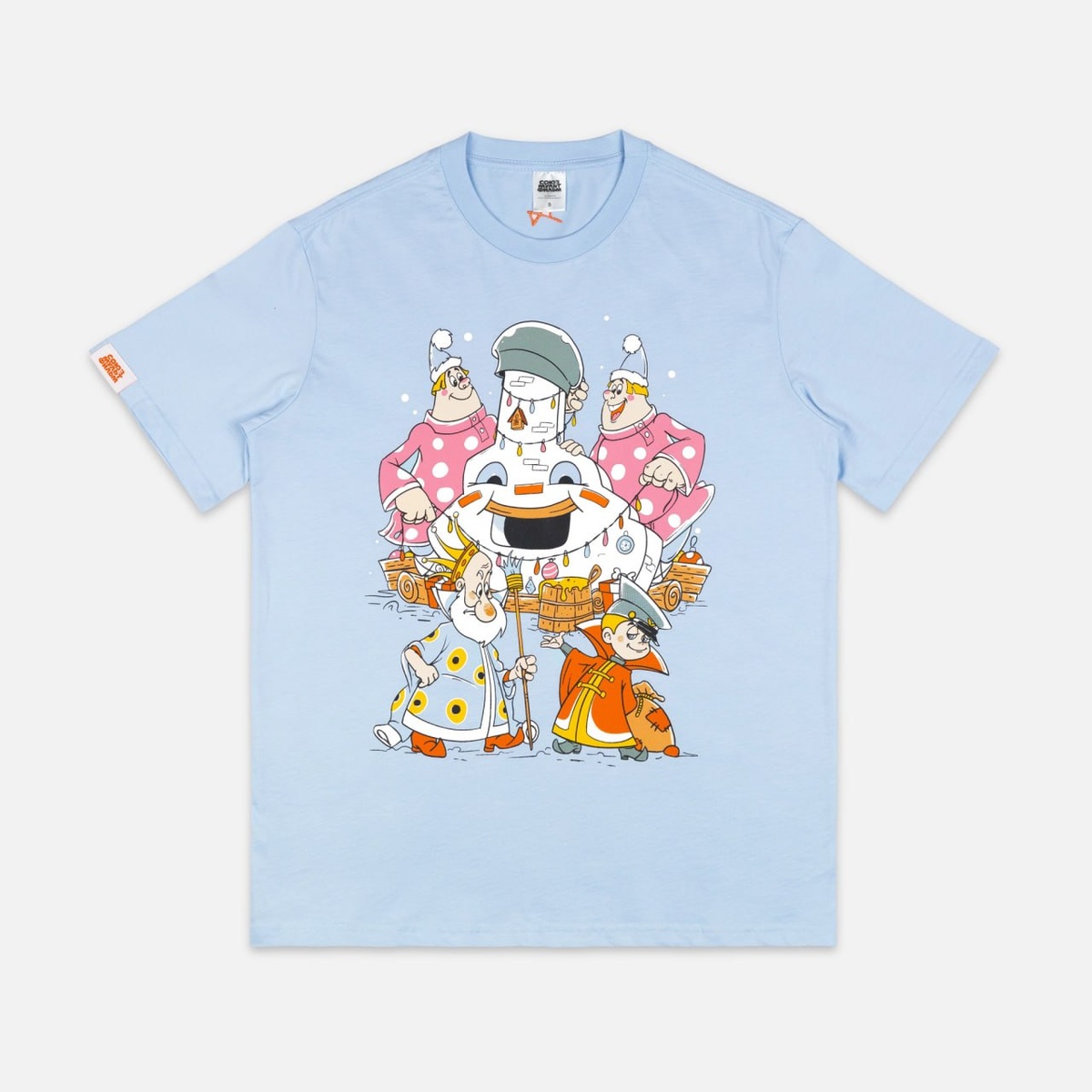 Новогодние футболки по мультфильму "Вовка в Тридевятом царстве" в коллаборации с Союзмультфильмом. Пошиты из премиальной кулирной глади плотностью 190 г/м2 производства фабрики Gulle. Изображения нанесены шелкографией. Вышитый логотип. Ссылка на карточку товара.