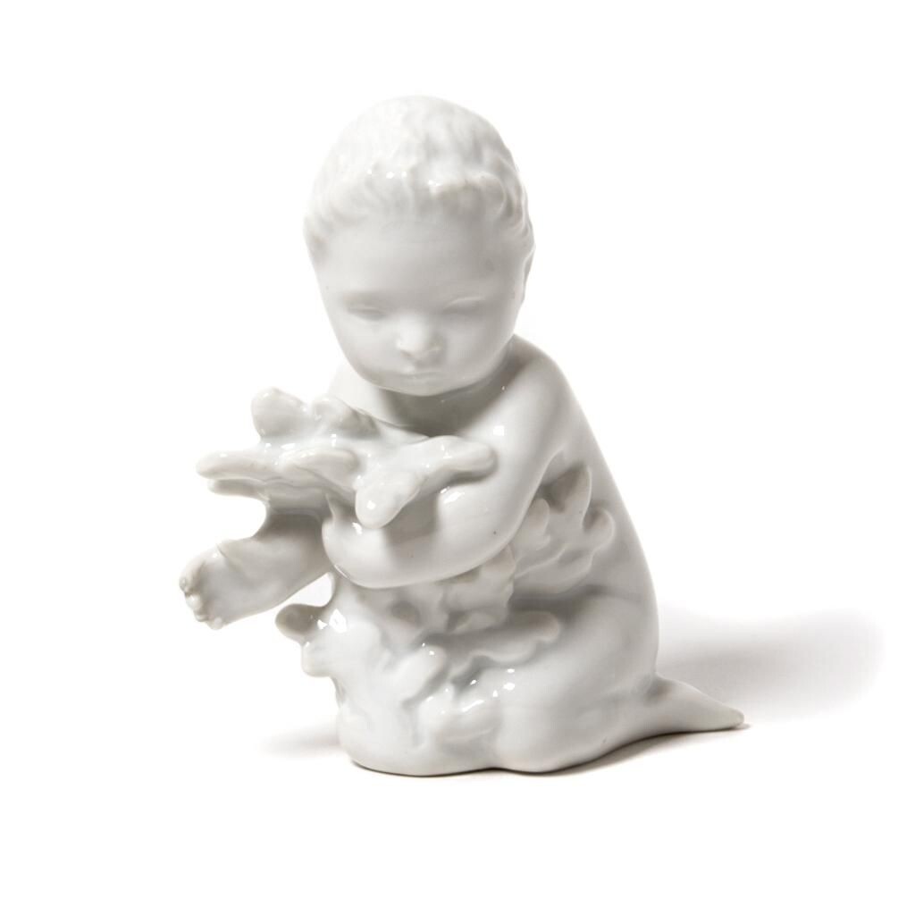 Мальчик-русалка с морскими водорослями. Дания, г. Копенгаген, Bing & Grondahl Фарфоровая фигура (статуэтка) "Мальчик-русалка с морскими водорослями". Нерасписанный белый фарфор. Белая глазурь. Дания, г. Копенгаген, Bing & Grondahl. Скульптор: Ebbe Sadolin/Svend Jespersen. Клеймо производителя: B&G Kjobenhavn Danmark B&G, 1948-1952 гг. Номер модели - 2266. Высота - 10 см. Статуэтка второго сорта. Без сколов, повреждений и без реставраций. Porcelain figurine "Sea boy with sea-weed". White glaze. Blanc de chine. Denmark, Copenhagen, Bing & Grondahl. Sculptor: Ebbe Sadolin/Svend Jespersen. Factory mark: B&G Kjobenhavn Danmark B&G, the 1948-1952. Model - 2266. Height - 10 cm. Figurine of the second sort. Without chips, damage and restorations. Bing & Grondahl, 1948-1952 Стоимость лота: 10 100,00 ₽ Подробнее на нашем сайте